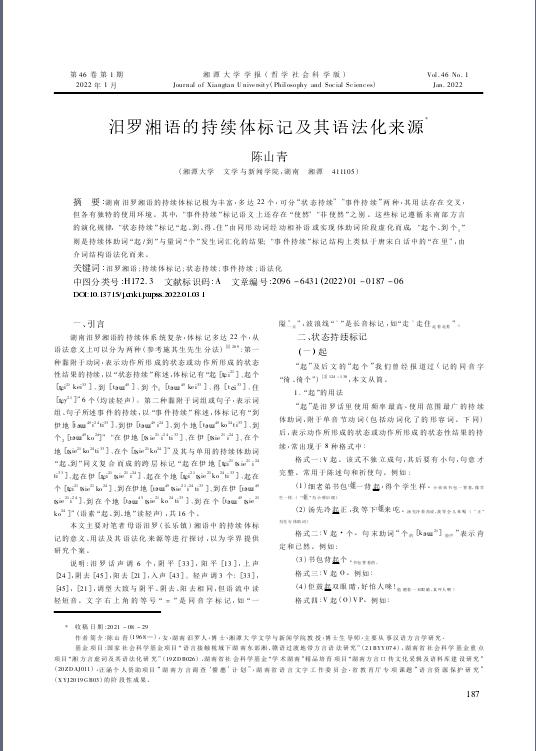 陈山青教授论文《汨罗湘语的持续体标记及其语法化来源》刊发CSSCI期刊《男同网 学报》