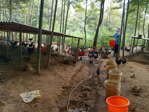姚所长三天两头来探访,从养殖规模、养殖技术等方面给了很可贵的建议。姚所长建议我们不要把养殖局限在鸡舍里,要让土鸡有充分的运动。于是我们在屋后的竹林里搭建架子。